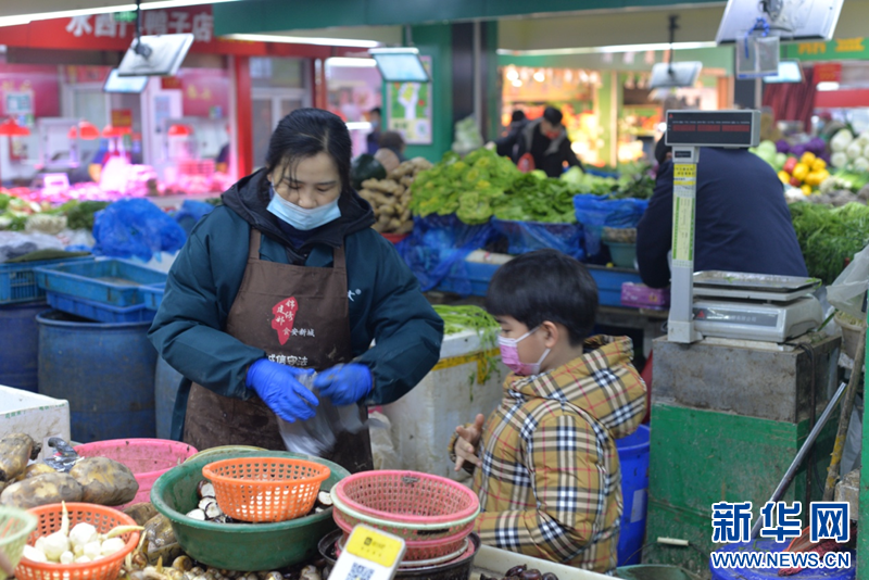 “與去年同期相比,我們農貿市場的人流量略有下降?!鞭r貿市場管理員孫奧介紹,在疫情防控常態化背景下,農貿市場推出線上買菜平臺,消費者在線上選好菜品后再下單,由農貿市場的工作人員通過送外賣的方式送貨上門。