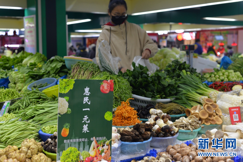 在農貿市場,很多攤位上豎著“惠民一元菜”的紙質招牌,插有這個招牌的農產品僅一元一斤。購買時間從早上8點到10點,售完為止。農貿市場的工作人員會提前兩天左右與攤主溝通,確定參與“一元購”活動的具體產品,方便攤主提前備貨,保證貨源充足。
