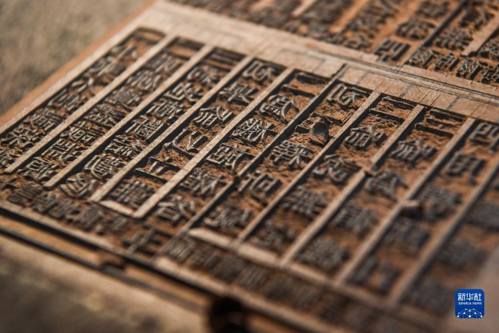 這是一塊王康在鐫刻、即將完成的經版(4月15日攝)。