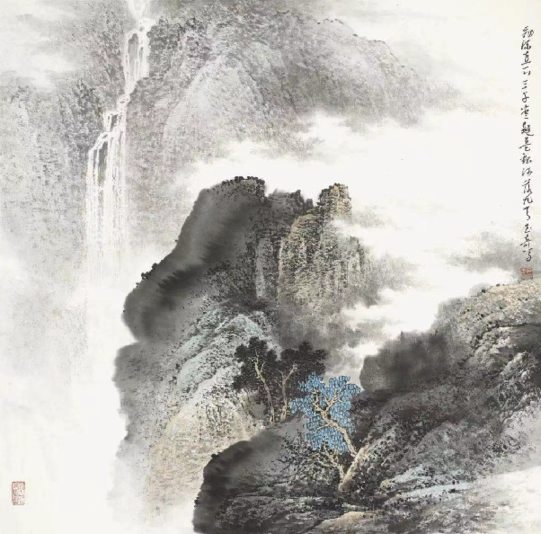 玉奇之真,真為堅守。其實在我看來,人的一生是個自我遇見的過程,本身就是一次長途跋涉的修行,惟有歷苦的堅守,才能覺知幸福的奧秘。這些,從玉奇的畫里,似乎都能洞見。如果說,他筆下的云是活的,我則更喜歡他畫里水的靈動,山的挺拔,真情肆意的流露。這其中,有穿越千年對傳統文化的守望,也有對天地萬物的感通和真情的表達。我遇見的玉奇,生活中也總是真性而為,有時讓人感覺真的可愛,真的有點兒任性,甚至真的不計后果。我想,這便是一個藝術家自然而然對“真”的執著堅守,真性為人的灑脫體現。