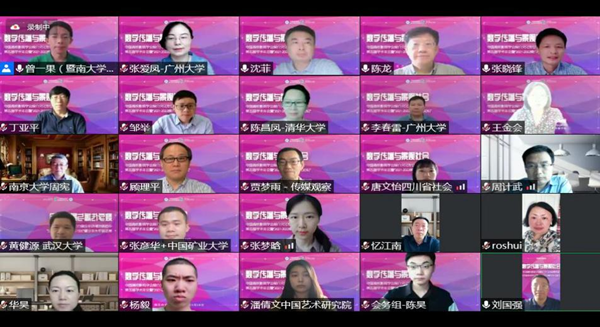 5月28日下午,10場分論壇在云端同步舉行,分別聚焦“數字傳播與媒介文化新形態”“數字化社會的媒介景觀”“日常生活的媒介化和景觀化”“景觀社會下的社會治理”“數字時代下的文化景觀”“作為生活實踐的媒介景觀”“數字傳播中的景觀與符號”“數字傳播中的技術與想象”“跨學科視域下的景觀社會”“數字傳播中的話語與反思”等媒介文化領域的重要議題展開宣講、討論和評議,來自清華大學、中國人民大學、浙江大學、南京大學、武漢大學、四川大學、廈門大學、北京師范大學、華東師范大學、中國傳媒大學、暨南大學、蘇州大學、南京師范大學、香港教育大學、澳門科技大學、倫敦國王學院等海內外30余所高等院校和科研院所的120余位專家、學者、碩博士研究生參與其中,氣氛融洽、反響熱烈。