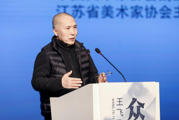 周京新在開幕式上致辭,他表示,本次畫展讓他感受到作者是一位非常理性的畫家,是對藝術和意境的構思以及畫面的整體營造把握和控制上的理性,同時,王飛飛對具體的藝術語言、畫面的營造有一種別人所沒有的把握能力。畫展名叫“眾山皆響”,不僅體現了王飛飛一貫的追求,也體現了他在山水畫創作上獨特的思考以及探索方向。
