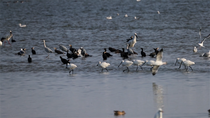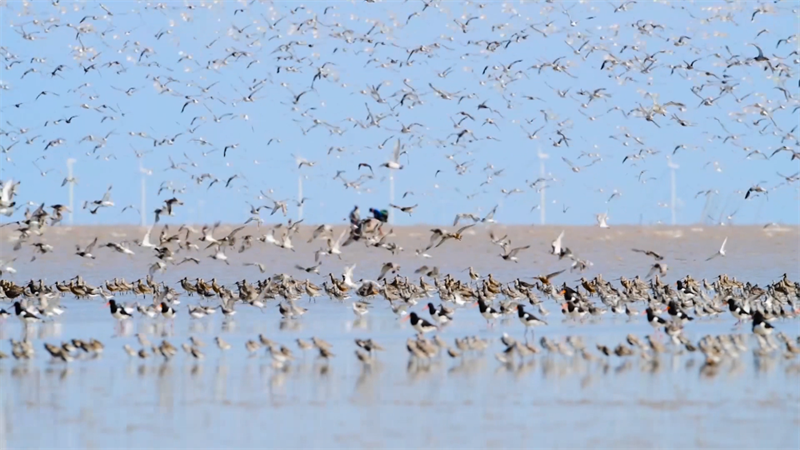?????? 近日,江蘇鹽城東臺條子泥濕地熱鬧非凡,大批候鳥前來“打卡”駐留,數量種類超過往年?!百F客”的到來,給濕地增添了節日的喜慶,同時也給值守的濕地護鳥員壓上了擔子。