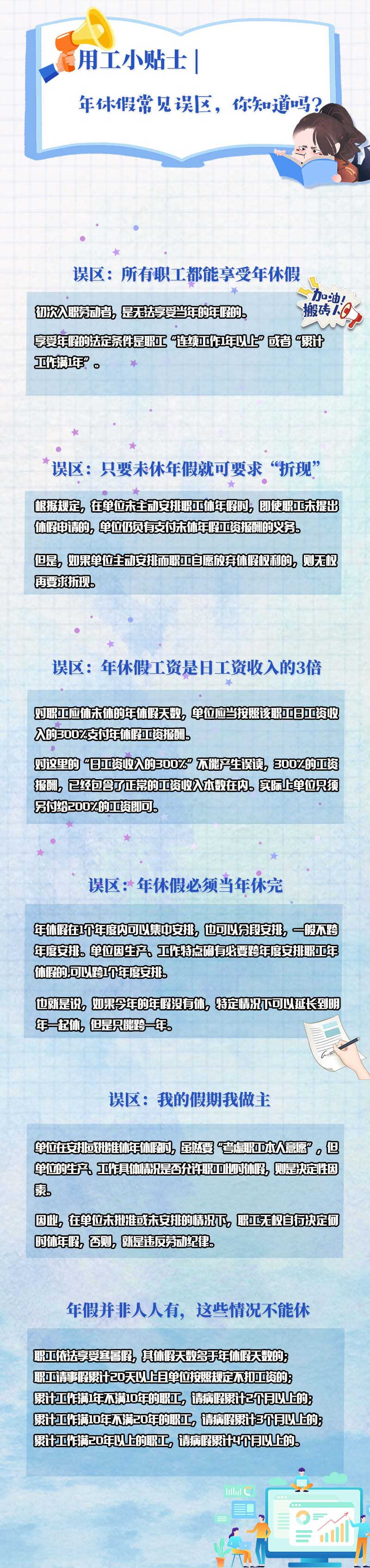 每到歲末年初,帶薪年假都會成為一個熱點話題,由休帶薪年假引發的勞動爭議案件也逐年增多。對于帶薪年休假,很多職工會陷入一些認識誤區……入職時間長短都可休?我的假期我做主?未休年假能否“折現”?關于年休假的那些事兒,你都搞清楚了嗎?(王玥)