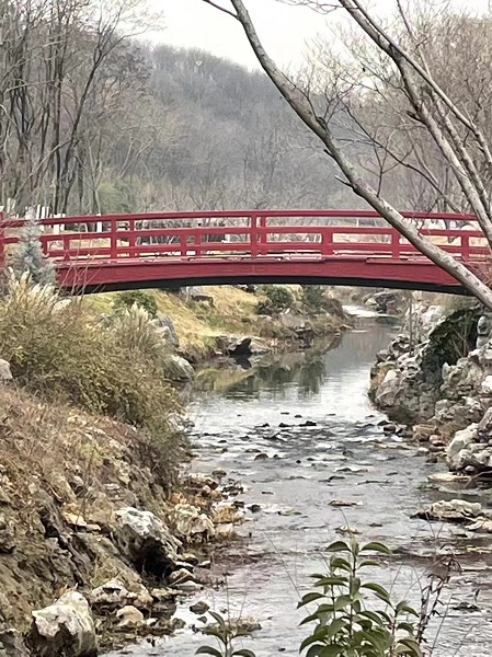 結伴過橋湖畔游;