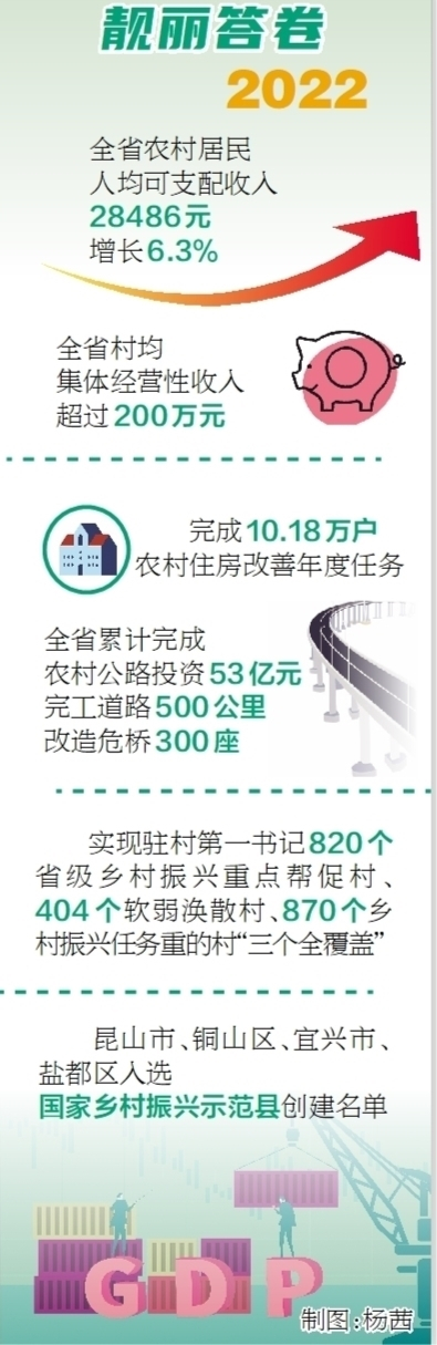 產業振興是鄉村振興的重中之重。聚焦產業發展,江蘇省打造“一縣一業”“一村一品”,實施“蘇韻鄉情”系列推介、“互聯網+”農產品出村進城工程等,豐富鄉村經濟形態;加快農業全產業鏈建設,培育4條千億級省級重點鏈和一批市域、縣域特色鏈;深化農業生產“三品一標”行動,啟動農業品牌江蘇精品培育計劃。