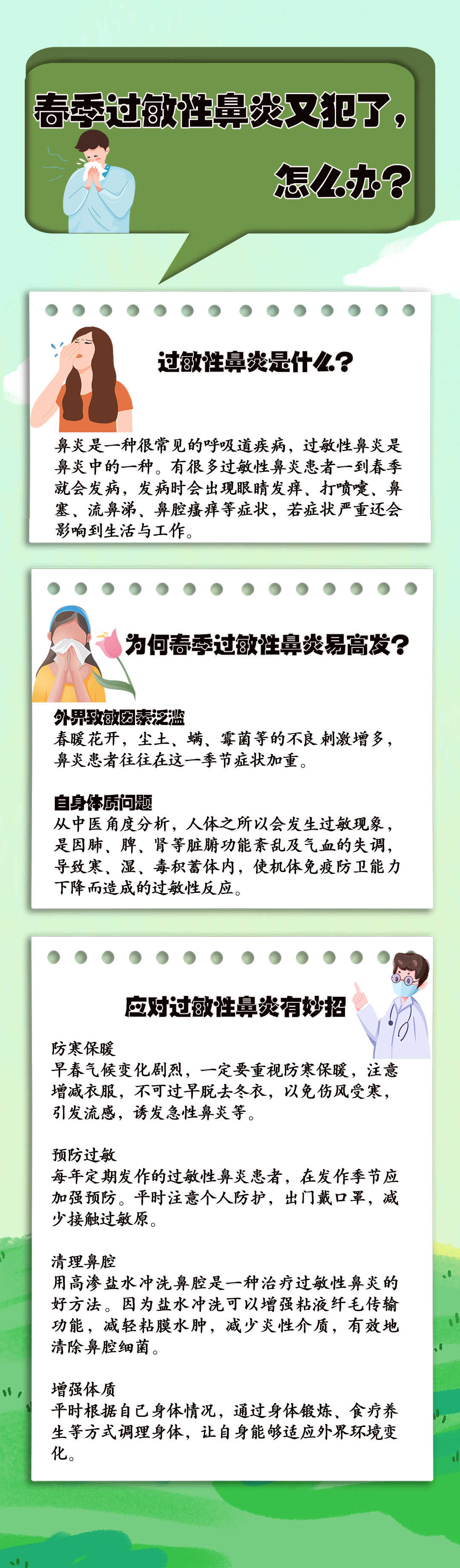 春天到了,氣溫回暖,萬物復蘇,很多人都享受著自然界的生機勃勃。然而,對某些人群來說,美好的春景往往還有點“副作用”:一不小心就過敏鬧鼻炎了,鼻癢鼻塞、噴嚏不斷、淚水漣漣……為什么春季是季節性過敏性鼻炎高發的季節?又有什么妙招方法可以有效緩解過敏性鼻炎帶來的困擾?(王玥)
