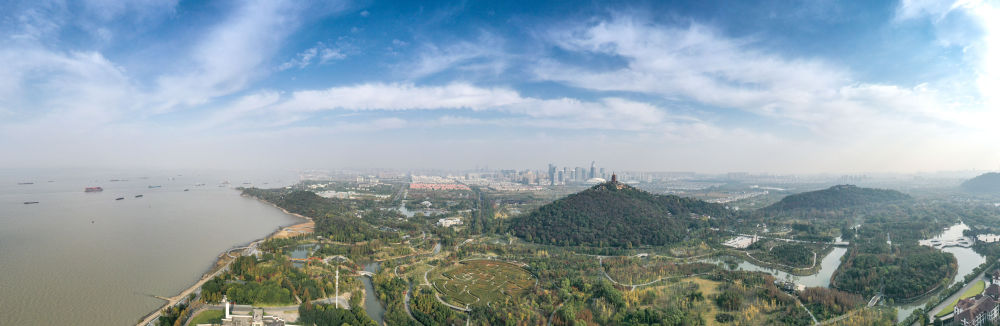 ????位于南通市的狼山國家森林公園沿江景色。近年來,江蘇省推進長江生態環境保護修復工作,拆除沿岸非法碼頭、關停沿岸污染企業、修復長江兩岸生態濕地。新華社記者 楊磊 攝
