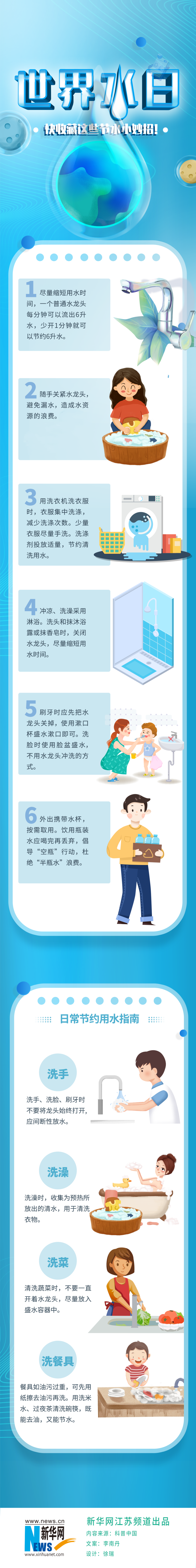 ????2023年3月22—28日是第三十六屆“中國水周”。水是生命之源,惜水、愛水、護水,從培養好的節水習慣開始。掌握節水小竅門,不斷增強節水意識,從日常小事做起,從我們每一個人做起?。ㄇ覃?報道員:李南丹 徐瑞)