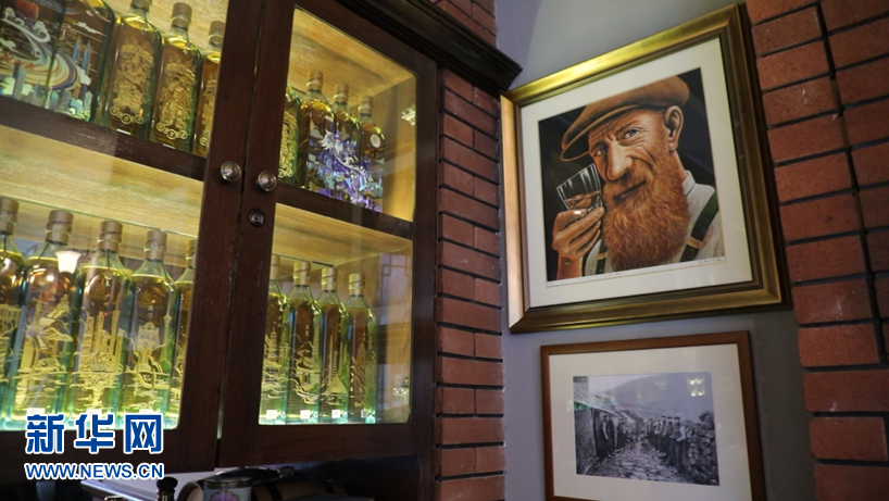 英倫風的酒吧里,蘇格蘭酒瓶身上印著中國名勝的圖案
