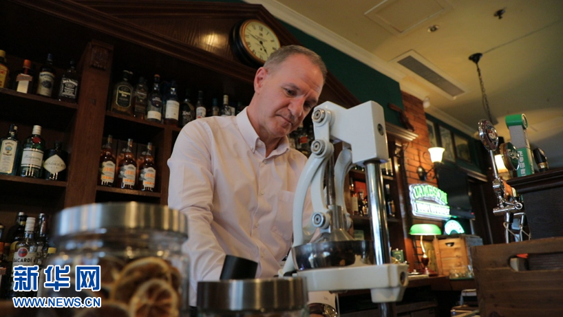 一杯“生命之水”,是打開心扉、交流故事的鑰匙。酒吧里人來人往,每一位客人都有自己的故事。伊恩身處“最佳聆聽位”,常能與形形色色的人談天說地。他交到了很多中國朋友,尤其是酒吧里的同事們,每一位都在這里工作了十年以上?!拔覀兿窦胰艘粯?,知根知底,相互扶持?!币炼髡f。盡管酒吧很少休息,但伊恩樂此不疲。