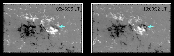 “夸父一號”載荷全日面矢量磁像儀(FMG)觀測到耀斑爆發前縱向磁場變化。(中國科學院紫金山天文臺供圖)
