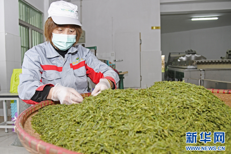 剛采摘下來的嫩茶芽,還帶著微濕的水汽,晶瑩翠綠。攤涼、殺青、揉捻……生產車間里,工人們正忙碌著,通過一道道精細工序,讓新鮮茶芽成為合格的金壇雀舌。