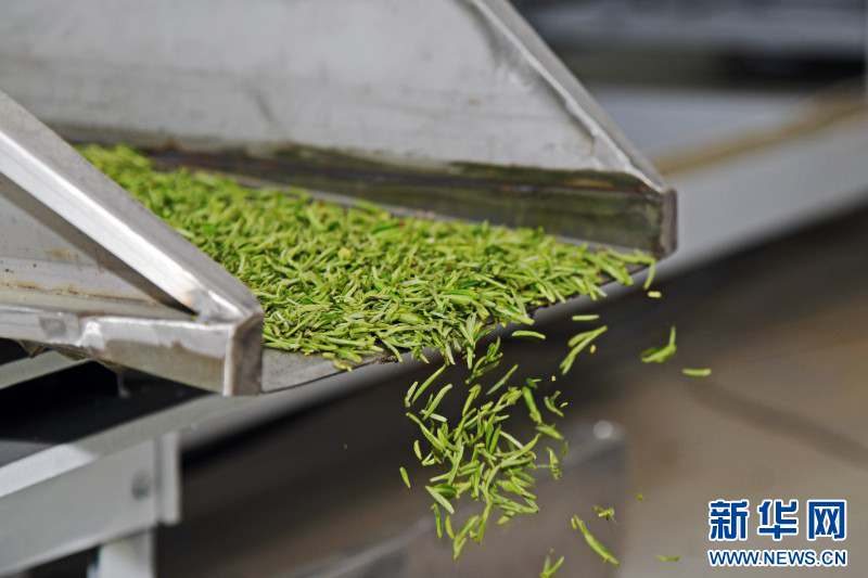 金壇區茶葉協會相關負責人介紹,茶葉采摘后需要經過6—8小時攤涼的過程,去除茶葉中的水分和青草氣,而后依次進入投葉、殺青、熱風脫水、冷卻、理條、冷卻、整形、冷卻、干燥、提香等10個工序。其中,殺青是綠茶形狀和品質形成的關鍵工序,通過高溫破壞和鈍化鮮葉中的氧化酶活性,抑制鮮葉中的茶多酚等酶促氧化,蒸發鮮葉部分水分,在壓平鮮葉的同時去除青味,促進茶香形成。最后,還要經過人工精制,挑選黃葉和雜質,對出廠茶葉的含水量、凈含量、感官品質、農藥殘留等情況進行檢測,合格后才能進行包裝上市銷售。