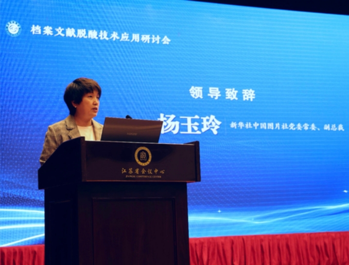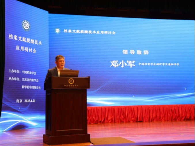 中國檔案學會副理事長兼秘書長鄧小軍,新華社中國圖片社黨委常委、副總裁楊玉玲,江蘇省檔案館副館長陳萬田出席本次研討會并致辭。