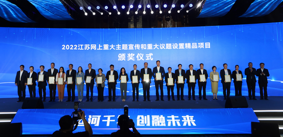 圖為2022江蘇網上重大主題宣傳和重大議題設置精品項目頒獎儀式現場。