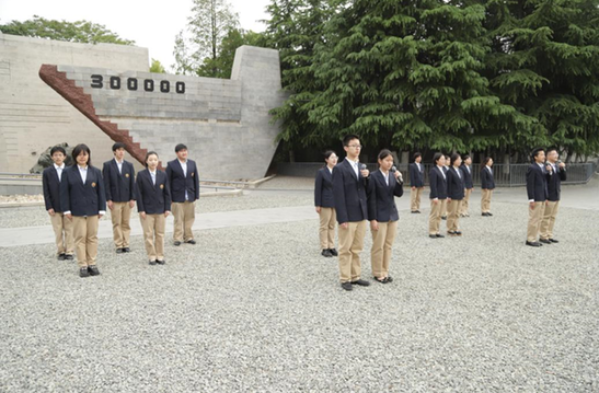 在紀念館和平廣場,來自芳草園小學朗誦團的和平宣講小使者在象征和平的“紫金花女孩”銅像旁朗誦馮亦同所作的《紫金花》。為了引導廣大青少年傳播歷史與文化、弘揚愛國主義精神,紀念館在多所小學中選拔了一批和平宣講小使者,他們通過專業培訓,走進學校、社區、愛國主義教育基地,講歷史、誦經典、頌榜樣。(報道員:竇心蕊 徐紅霞)