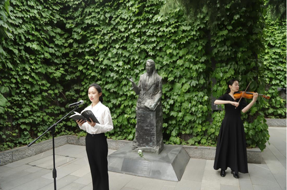 紀念館悼念廣場西側,張純如銅像靜靜矗立。伴隨著舒緩悠揚的小提琴聲,南京傳媒學院大學生孫昕怡朗讀張純如女士撰寫的《南京浩劫:被遺忘的大屠殺》書中的篇章。孫昕怡曾在2021年南京大屠殺死難者國家公祭儀式上領讀《和平宣言》。她說:“兩年前我誦讀時更多的是悲憤之情。如今,我對這段歷史有了更深的理解。作為新時代的青年,我們要牢記使命,砥礪前行,更好地維護和平?!?/p>