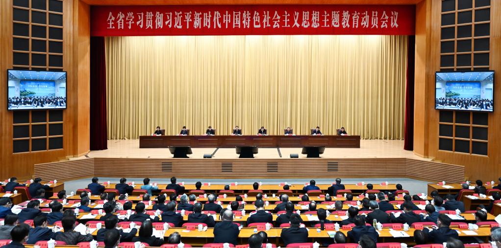 (圖為江蘇省學習貫徹習近平新時代中國特色社會主義思想主題教育動員會議現場。吳勝攝)