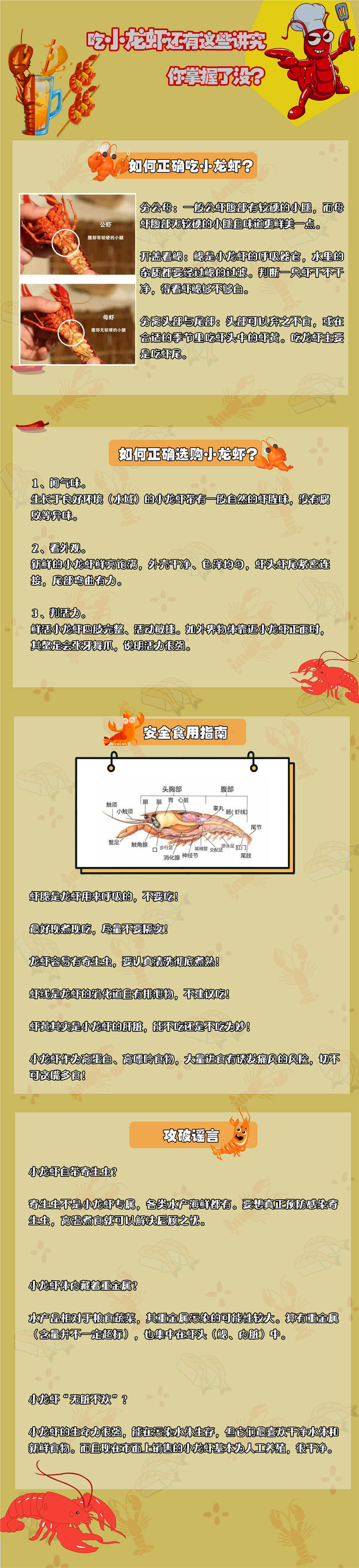 夏天來臨,麻辣、油燜、蒜蓉、十三香、冰鎮、清蒸等味道的小龍蝦占據夜宵榜C位,誰能拒絕小龍蝦的誘惑?“人”紅是非多,由于太受大家歡迎,小龍蝦也常常受人非議。小龍蝦的頭能吃嗎?重金屬超標?但是蝦黃好誘人啊,能吃嗎?你是否有很多問號?那今天我們就來說一說小龍蝦的那些事兒~(王玥)