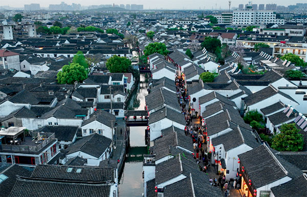 游客在江蘇蘇州山塘街休閑游玩(2023年4月10日攝)李博攝/本刊