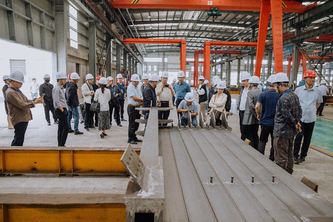 在觀摩環節,與會嘉賓還前往參觀了江蘇江海杭蕭鋼結構裝配式生產基地,在相關負責人的詳細介紹中全方位了解車間全自動智能化的生產設備和鋼結構構件的生產過程。完成走訪后,到場嘉賓一致認為,鋼結構裝配式建筑有著其他建筑類型不可比擬的優勢,江蘇江海杭蕭不僅在技術上有創新,在鋼結構加工質量上也具有較強競爭力。