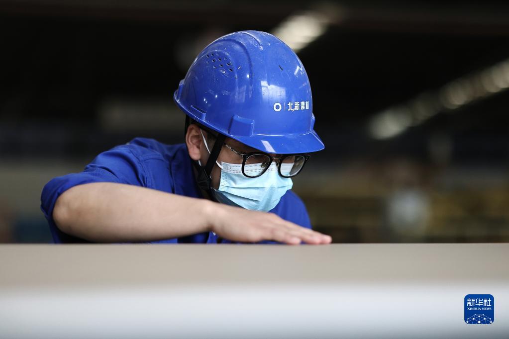 5月24日,在下蜀高新技術產業園內的一家建材企業,工人在石膏板生產線忙碌。