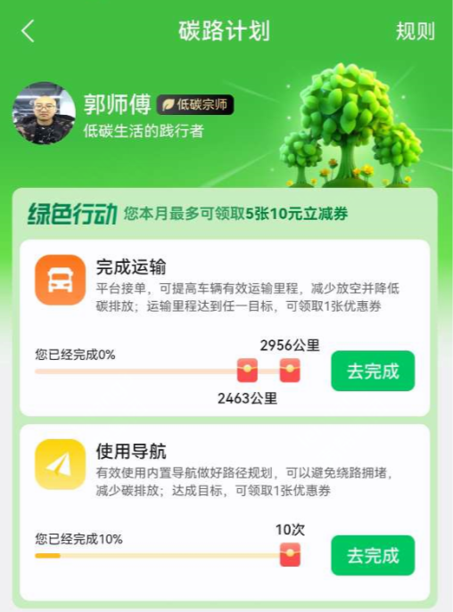 滿幫集團總裁郭浪波表示,貨車司機是重要的運力供給,為他們打造看得見、可兌現的碳賬戶,是從行業運營端(供給側)減少公路貨運行業碳排放量。