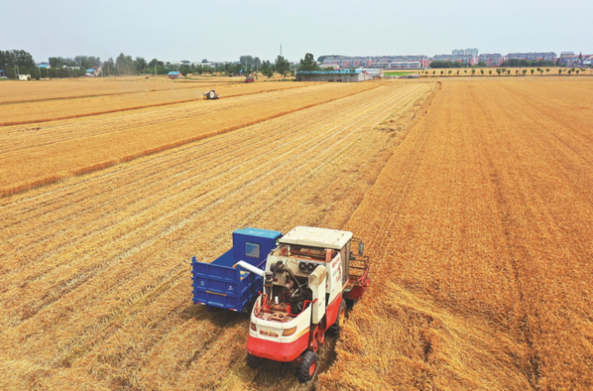 睢寧縣李集鎮機械化夏收正在進行。 趙鵬 攝