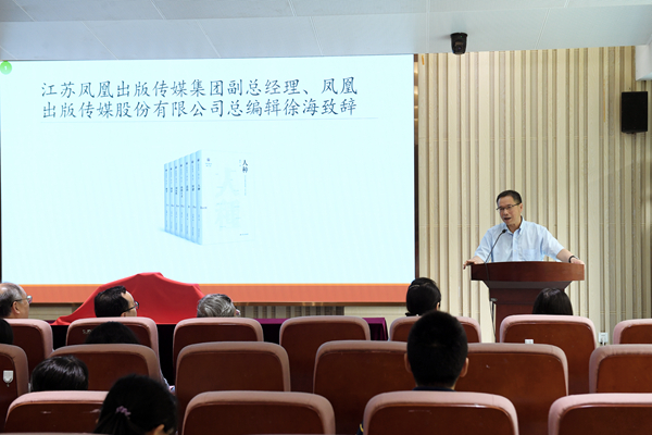 江蘇鳳凰出版傳媒集團副總經理、鳳凰出版傳媒股份有限公司徐??偩庉嫶沓霭娣街罗o。他首先祝賀“學衡爾雅文庫”叢書的順利出版,接著回顧了鳳凰出版傳媒集團與南京大學多年來的緊密聯系。他期待未來與學衡研究院繼續密切合作,實現“學衡爾雅文庫”出版100本概念史專著的宏偉目標。
