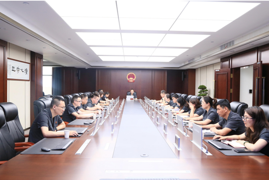 2023年6月13日上午,如皋法院召開接受市人大常委會對員額法官履職評議動員部署會。院黨組副書記、副院長顧雪紅主持會議,班子成員、相關部門負責人、被評議對象參加會議。