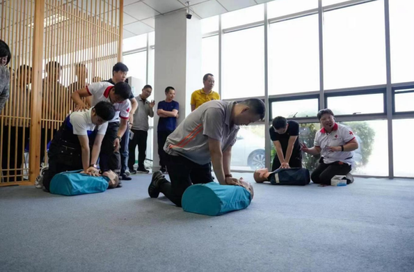 開展應急救護技能培訓。培訓內容包括創傷救護、常見急癥和意外傷害、心肺復蘇操作等應急救護理論知識,以及詳細規范的應急救護技能實操,實踐操作中,學員們積極演練,認真練習操作要領及技巧,順利掌握了海姆立克急救法、心肺復蘇術、特殊傷的包扎等應急救護技能。