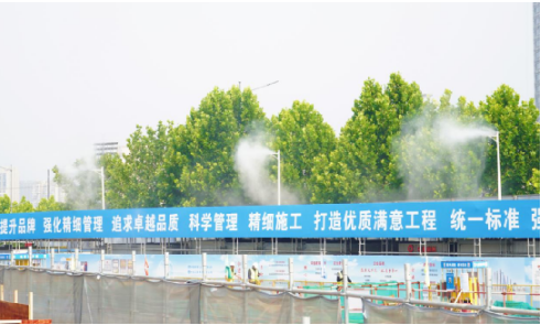 6月14日清晨,中建三局江蘇省婦幼保健院總部項目建造總監高寬的身影在工地外圍來回轉動,檢查工地高桿噴淋運作情況?!皣娏芟到y是揚塵治理的新型高效設備,能減少60%的揚塵問題?!?/p>