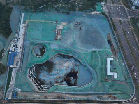 項目為EPC工程,總包團隊中建三局自規劃建設以來,就全面牽頭設計施工,積極貫徹綠色可持續發展理念。項目預先建立BIM場平、科學合理地進行平面布置;布置項目主大門兩側設置生態圍墻,生態圍墻是用綠色植物編植成的墻體,對環境能起到保護和凈化作用,通過自身的代謝將釋放負氧離子、加濕降噪、尤其對粉塵以及有害物質有較強的吸收能力,提升項目周圍空氣質量。通過綜合管線碰撞檢測等試驗,對暖通、電氣、給排水等線路進行優化,實現了材料應用的最大化。同時,充分考慮到現場施工情況,從揚塵降噪、綠色建材、光污染防范等方面,優化 各項關鍵節點和關鍵環節,著力解決建筑工地綠色治理的難題。