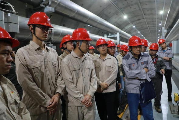 6月10日上午,參與本次活動的“長三角特高壓紅色輸電聯盟”兄弟單位集體參觀了有著“萬里長江第一廊”之稱的蘇通GIL綜合管廊,并下到江底近距離接觸管廊隧道內部實景,真實感受目前世界上電壓等級最高、輸送容量最大、技術水平最高、最長距離GIL創新工程。在“沉浸式”“實景式”“體驗式”的實地黨課感受到了我國電力事業在新時代突飛猛進的發展速度。