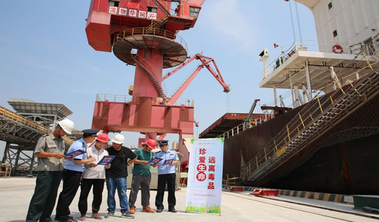 為進一步加強禁毒宣傳教育工作,引導群眾自覺遠離毒品、抵制毒品,6月15日,鎮江邊檢站民警來到揚中潤華物流碼頭組織開展“珍愛生命、遠離毒品”主題宣傳活動。