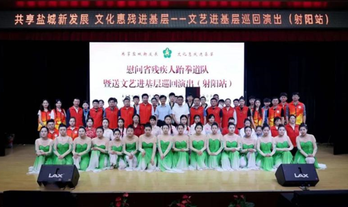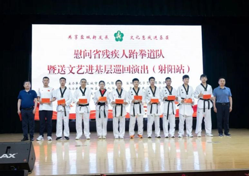 6月13日,由鹽城市殘疾人聯合會、鹽城市文學藝術界聯合會聯合舉辦的“共享鹽城新發展,文化惠殘進基層——慰問江蘇省殘疾人跆拳道隊暨送文藝進基層巡演”活動第四站,在射陽縣特殊教育學校舉行。鹽城市殘聯副理事長朱友余出席活動并發表講話,射陽縣殘聯黨組書記、理事長倪劍致辭。射陽縣部分殘疾人、縣特校師生和江蘇省殘疾人跆拳道隊隊員等近百人現場觀看了文藝演出。