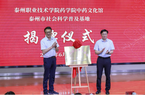 6月17日下午,在端午節來臨之際,“丹心閃‘藥’ 厚生佑民”中華藥文化推廣系列活動在泰州職業技術學院啟動。泰州職業技術學院黨委書記陳士宏、泰州市社科聯(院)黨組書記、市社科聯主席朱瑩出席活動并為泰州職業技術學院藥學院“泰州市社會科學普及基地”揭牌。