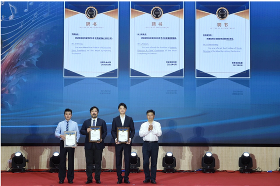 市委常委、宣傳部部長李秋峰為無錫交響樂團核心成員頒發聘書。聘請林大葉擔任無錫交響樂團藝術總監、首席指揮,聘請尹鋒擔任無錫交響樂團常務副團長,聘請李劭晟擔任無錫交響樂團音樂指導。