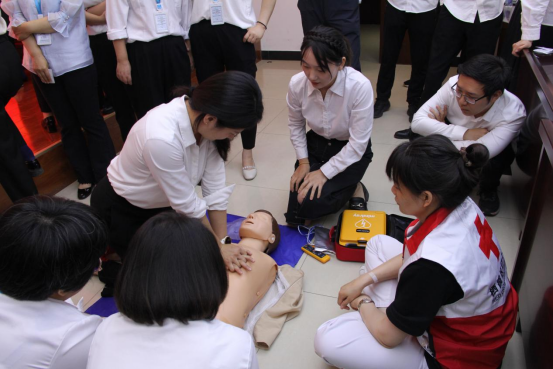 培訓分為CPR(心肺復蘇術)、AED(自動體外除顫儀)、氣道異物梗阻急救三個板塊?;顒又?,醫務人員通過播放標準施救方法的視頻和實地操作演示兩種方式,向參培青年演示了如何正確地挽救失去意識、心肺功能停止的遇險者的生命。經過練習和實操考核,現場43名青年全部取得代表現場急救合法性的證書。
