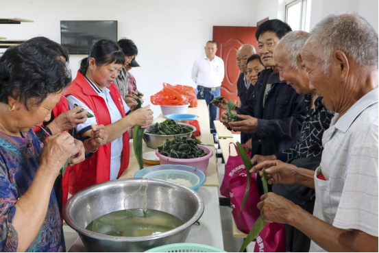 以愛之老之心行陪伴計?;顒蝇F場,泰興市春風民生服務中心的社工將準備好的粽葉、糯米、紅棗等材料整齊地擺放在餐桌上,來自該鎮的愛心志愿者們和老人們在滿是米香、棗香、粽葉香的氛圍中大顯身手,選粽葉、舀糯米、放紅棗、扎繩子,動作一氣呵成,不一會兒粽子就堆成了“小山”。大家圍在一起,話著家常,現場一片其樂融融,好不熱鬧。棕子熟了,元竹鎮慈善社工站負責人將一串串香氣四溢的“愛心粽”送到了現場21名失獨老人手中,并送上節日的祝福。