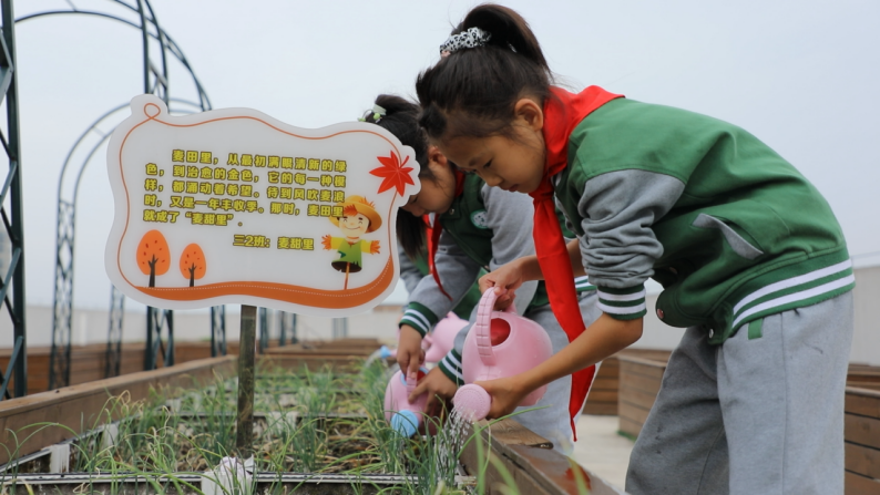 利用課間、勞動大課間、勞動課、綜合實踐課、班隊會課、課后服務等時間,有序地組織學生根據年齡的不同參與到具體的勞動中。我們的天空農場位于學校的教學樓樓頂,每周二下午的勞動大課間是孩子們最期待的時光,每個班級都有一塊責任田,在這里種小麥、種蔬菜等,體驗成長和收獲的快樂,并將勞動成果送至食堂進行加工,然后自己品嘗。正是有了如此多的實踐,我校的勞動教育案例也榮獲南京市一等獎。