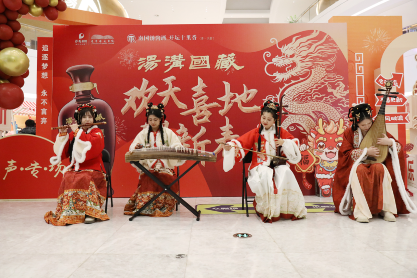 中國煤礦文工團是國家級藝術院團中歷史最悠久的單位之一,是匯集歌舞、話劇、曲藝、器樂演奏、朗誦等多種藝術形式的綜合性文藝院團,具有藝術門類多,演出形式豐富,人才多元,創作態勢活躍等特點。晚會現場,花板聯唱《繞口令》、相聲《出口成章》《瘋狂收音機》《禮儀漫談》《節日游戲》、雙簧《歡天喜地》等節目精彩紛呈,以劇情植入、創意口播等多樣形式融入其中的“湯溝國藏”,既展示了名酒的品牌魅力,也為觀眾帶來了歡樂。