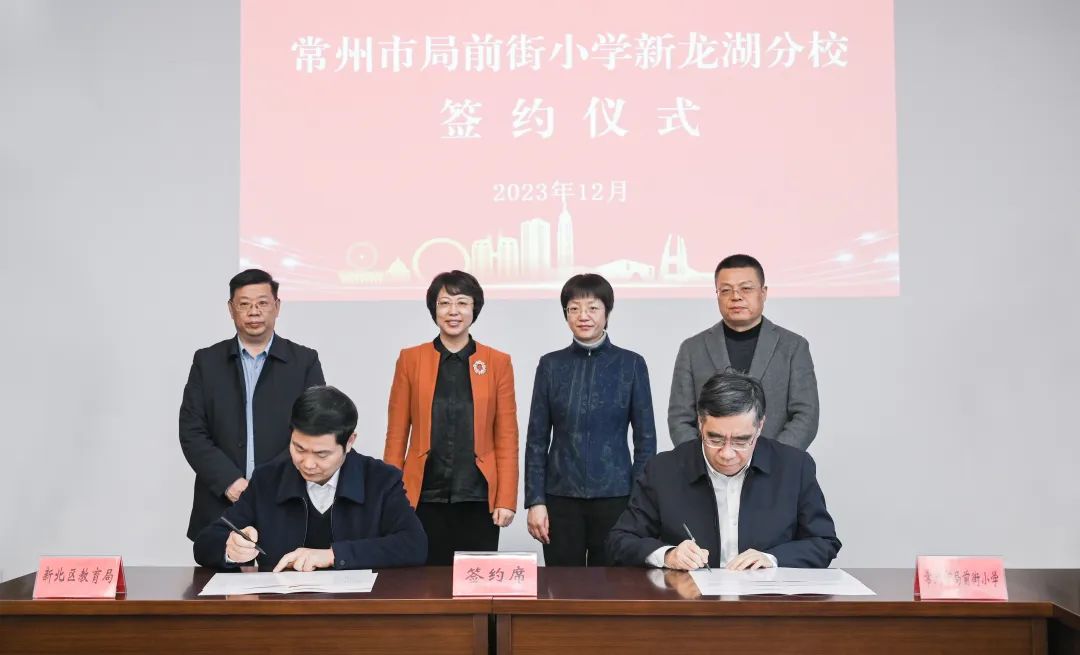 打造“高新慧育”名片,2023年12月14日,常州市局前街小學新龍湖分校簽約儀式舉行,新北區教育局與局前街小學簽訂合作辦學協議。新北區副區長陳建生、天寧區副區長曹瑜見證簽約。