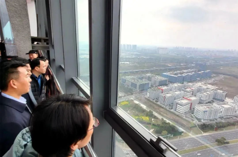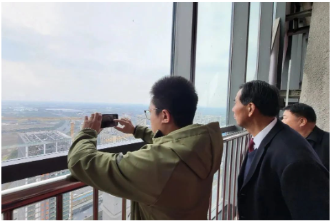 登頂150米高的高新廣場頂層,在33層落地玻璃前,商會嘉賓全局俯瞰高鐵新城核心區發展實貌,沉浸見證區域發展超速度。