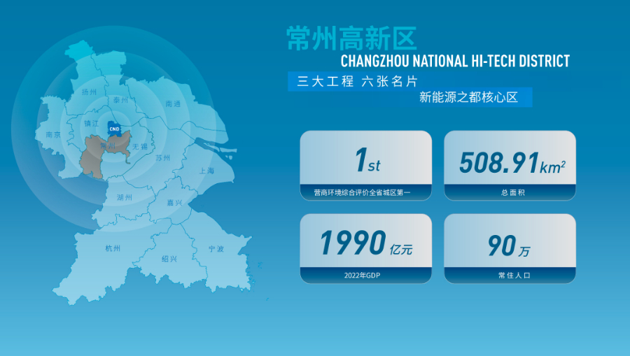 常州國家高新區是1992年11月經國務院批準成立的首批國家級高新區之一,也是蘇南國家自主創新示范區的重要板塊,營商環境綜合評價全省城區第一位。全區總面積508.91平方公里,常住人口90萬人。