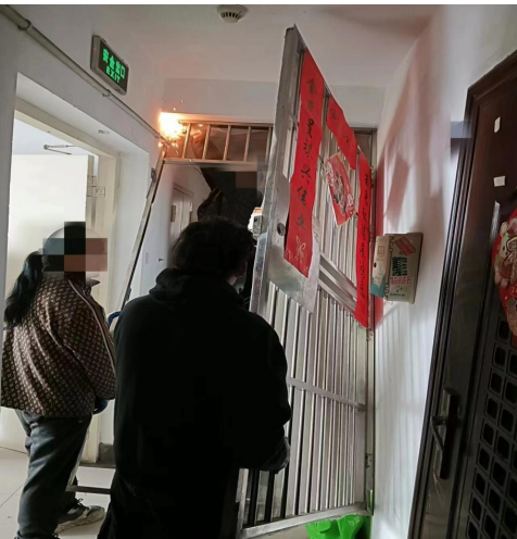 董女士家對面的業主就安裝了一扇防盜鐵門,但將管道豎井、電纜箱等公共設施也一并圈入其中。董女士說,“一旦發生情況,需要用到這些設施時,可能會因為找不到開門的人而耽誤”。為此,她已多次向物業、城管和應急管理等部門反映,希望能消除這些安全隱患。