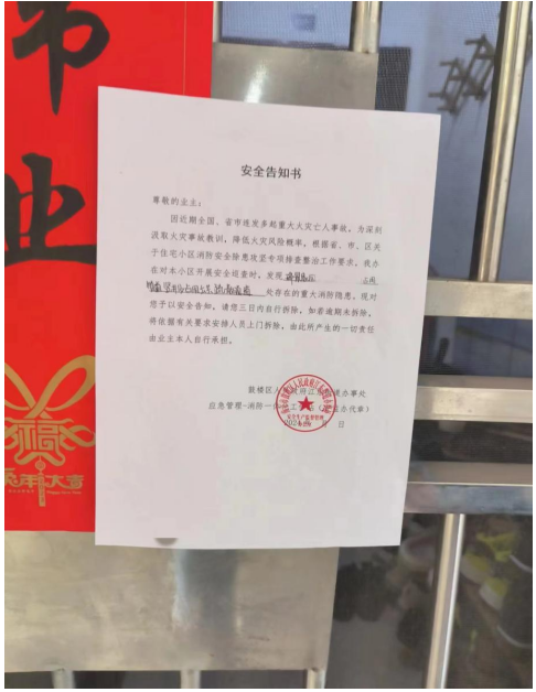 3月28日,南京鼓樓區江東街道辦向《民情直通車》欄目組反饋,由于業主未按規定自行拆除,街道已經組織執法部門依照相關規定進行了集中拆除。江東街道辦表示,下一步,街道將在轄區內持續開展安全隱患摸排整治,嚴防類似問題再次發生。(虞啟忠 報道員:施博瀚 曹宸宇)