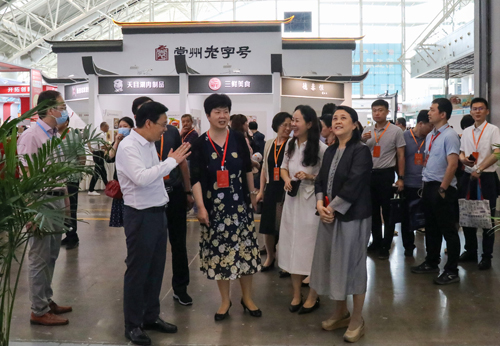 商務部流通業發展司副司長李翌、江蘇省商務廳副廳長吳海云、商務部駐南京特派員辦事處副特派員李黨會等嘉賓領導參觀湯溝酒業展館,聽取了湯溝酒的介紹。湯溝酒業黨委副書記、副董事長、總經理鄭軍向嘉賓領導介紹了企業的參展情況和發展情況。