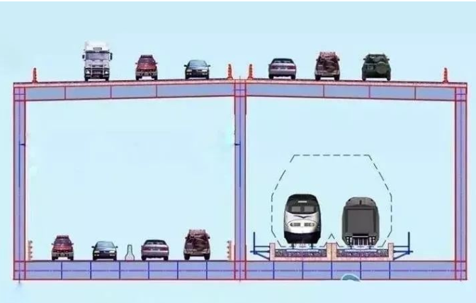 該部分工程位于常州側公路合建段,結構形式為上下層結構布置,上層橋面布置為雙向6車道高速公路,下層橋面布置為雙向4車道一級公路。